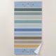 Ein klassisches gestreiftes Strandtuch mit Monogramm und perfekt für jedes Alter oder Geschlecht. Erstellt in weicher Blues, Grau und Tans mit Seesternakzenten. Sehen Sie sich die passende Totentasche und andere koordinierende Gegenstände in der Kollektion "Strandstreifen und Sternfisch" in Camp_and_Hütte auf Zazzle an.