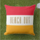 Dieses farbenfrohe Design besticht durch den BEACH DAY-Text in einem weißen, horizontalen Streifen in der Mitte, der mit leuchtend roten und gelben orangefarbenen Hintergründen verziert ist.