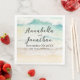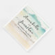 Diese eleganten Hochzeitsnapkins zeichnen sich durch ein Strandbild aus. Im unteren Teil befindet sich ein schöner Sandstrand mit türkisblauem Wasser im oberen Teil. Die Wellen überspringen den Sand unter der Sonne. Die Hochzeitsinformationen werden in der Mitte in einem schwarzen Schriftart gedruckt.