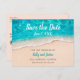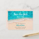 Diese moderne-Karte bietet einen Blick auf den Strand, wenn die Wellen am Ufer brechen. Das Design ist ideal für eine Sommerhochzeit, eine Strandhochzeit oder eine Hochzeit in Urlaubsort. Die Farben sind beruhigend und warm.