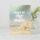 Hochzeit am Strand Save the Date. Beautibel Save the Date, dass mit Ihrem Namen angepasst werden kann.Wählen Sie den "Anpassen"-Button, um den Schriftart Stil, Farbe und Größe zu ändern.