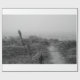 Der kleine Weg führt in dicken Nebel zum Strand. Schwarz-Weiß-Fotografie.