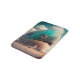 Whale sculpture on the beach, in the style of rendered in cinema4d, surrealistic grotesque, dreamlike illustration, dark cyan and green, concept art, gigantic scale, fish-eye lens
