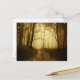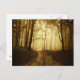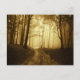 Straße in einem dunklen Wald mit Nebel Postkarte