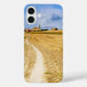 Strecke in der Mitte einiger geernteter Weizenfelder, die nach Sansol auf dem Weg von Saint James (Camino de Santiago), Navarra, Spanien