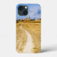Strecke in der Mitte einiger geernteter Weizenfelder, die nach Sansol auf dem Weg von Saint James (Camino de Santiago), Navarra, Spanien