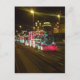 Postkarte mit Foto der Straßenbahn, die als Zug mit roten, grünen, gelben und weißen Lichtern in Blackpool als Teil der jährlichen Beleuchtungen dekoriert ist