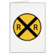 Ein klassisches gelbes Schild mit einem Bahnübergang.