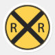 Ein klassisches gelbes Schild mit einem Bahnübergang.