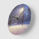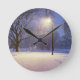 Straßenbeleuchtung und Schneebäume Runde Wanduhr