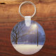 Straßenbeleuchtung und Schneebäume Schlüsselanhänger
