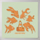 Ein lustiger Cartoon mit orangefarbenen Straßenecken, umgeben von Goldfischen. Dieses Design könnte als Umweltproblem gesehen werden, basierend auf dem behalt, Wasserwege sauber zu machen, aber ich habe es einfach so gezeichnet, weil ich in der Stimmung für etwas sonderbare Kunst war.