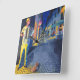 Schöne und einzigartige quadratische und kreisförmige Wanduhren. Das Originalgemälde heißt "Esquina Calma" und das Öl auf der Leinwand stammt von Steve Asay und zeigt wunderschöne Blau-, Gelb- und Goldtöne. Ideal für Zuhause, Restaurant und Büroeinrichtung. Auch ein großartiges Geschenk für Weihnachten, Hochzeiten und Geburtstage. Weitere Informationen über Steves Arbeit finden Sie unter SteveAsayCreates.com