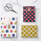 Ein Set von Packpapier mit drei verschiedenen thematischen Drucken für die Dekoration von Geschenken für verschiedene besondere Veranstaltungen.