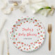 This beautiful and elegant plate features watercolor strawberries, daisies and foliage. The text combines handwritten script and serif fonts for a stylish and modern look. This is perfect for a spring or summer rustic baby shower.
