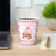 Basket with strawberries, hearts and pink bow Berry First Birthday paper cup. These "Berry First Birthday" paper cups present a delightful design: an overflowing basket filled with vibrant red strawberries. The design is enhanced with whimsical hearts and a delicate pink bow tied to the handle of the basket, with the "Berry First Birthday" text positioned beneath. All elements are set within a clean white square frame, on a bold hot pink and white gingham background.