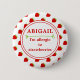 NewParkLane - Personalisierter Button für Kinder mit einer Warnung vor einer Erdbeerallergie, mit einem niedlichen, farbenfrohen Muster von kleinen roten Erdbeeren. Einfache Anpassung in Zazzle mit eigenem Text für ein personalisiertes Design. Alle Textstile, Farben und Größen können an Ihre Bedürfnisse angepasst werden. Karo diese Strawberry Collection für passende Objekte heraus. Haben Sie spezielle persönliche Designwünsche? Nehmen Sie Kontakt mit mir auf.