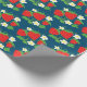 Strawberry and Flowers Pattern Blue Geschenkpapier