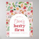 Strawberry Berry First Birthday Party Begrüßungsze Poster
