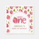 Personalisierte Strawberry Berry Erster Geburtstag-Party-Servietten für Mädchen, die süß eins werden. Wasserfarbene Erdbeeren, Blätter und Akzente mit weißem Blumen. Berry 1. Geburtstag Party Vorräte.