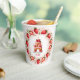 Feiern Sie stilvoll mit diesem bezaubernden Erdbeergebäck-Geburtstagstorte! Mit einer skurrilen Aquarellillustrierung des Buchstabens "A" als köstlicher Erdbeerkuchen ist dieses Design perfekt für die Party und Sommerfeiern der Kinder. Der Kuchen ist mit frischen Erdbeeren, cremefarbenem rosa Zuckerguss und einer glühenden Geburtstagskandle geschmückt, die eine festliche Touch verleiht. Um den Kuchen herum bildet ein wunderschöner Rahmen aus handbemalten Erdbeeren und grünen Blätter einen schönen Rahmen. Das Design spiegelt sich auf beiden Seiten des Bechers für einen nahtlosen Look. Eine perfekte Wahl für ein personalisiertes Geburtstagsthema!