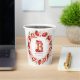 Feiern Sie stilvoll mit diesem bezaubernden Erdbeergebäck-Geburtstagstorte! Mit einer skurrilen Aquarellillustrierung des Buchstabens "B" als köstlicher Erdbeerkuchen ist dieses Design perfekt für die Party und Sommerfeiern der Kinder. Der Kuchen ist mit frischen Erdbeeren, cremefarbenem rosa Zuckerguss und einer glühenden Geburtstagskandle geschmückt, die eine festliche Touch verleiht. Um den Kuchen herum bildet ein wunderschöner Rahmen aus handbemalten Erdbeeren und grünen Blätter einen schönen Rahmen. Das Design spiegelt sich auf beiden Seiten des Bechers für einen nahtlosen Look. Eine perfekte Wahl für ein personalisiertes Geburtstagsthema!