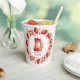 Feiern Sie stilvoll mit diesem bezaubernden Erdbeergebäck-Geburtstagstorte! Mit einer skurrilen Aquarellillustrierung des Buchstabens "D" als köstlicher Erdbeerkuchen ist dieses Design perfekt für die Party und Sommerfeiern der Kinder. Der Kuchen ist mit frischen Erdbeeren, cremefarbenem rosa Zuckerguss und einer glühenden Geburtstagskandle geschmückt, die eine festliche Touch verleiht. Um den Kuchen herum bildet ein wunderschöner Rahmen aus handbemalten Erdbeeren und grünen Blätter einen schönen Rahmen. Das Design spiegelt sich auf beiden Seiten des Bechers für einen nahtlosen Look. Eine perfekte Wahl für ein personalisiertes Geburtstagsthema!