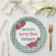 Die Teller der Erdbeergeburtstagsfeier sind perfekt für einen kleinen Jungen zum 1. Geburtstag! Es hat viele Beeren und ein kariertes, grünes Muster für ein Party im Bauernhof oder Picknickstil. Es ist eine großartige Option für die Geburtstagsfeier eines Jungen oder Mädchens! © 2023 Tea Olive Co.