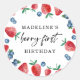 Strawberry Blueberry Berry First Girl 1. Geburtsta Runder Aufkleber