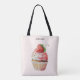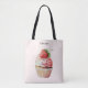 Eine Tasche mit einer leckeren Abbildung mit einem köstlichen, aussehenden Kuchen. Weiße Creme und eine große Erdbeere schmücken diese leckere Leckerei.