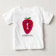 Feiern Sie den ersten Geburtstag Ihrer Tochter mit einem ERSTEN GEBURTSTAG Shirt mit einer süßen Erdbeere in Rot und Rosa. Ihr Text, der mit ihrem Geburtstag und Namen personalisiert werden kann. Für den Geburtstag eines Mädchens entworfen. Die Farben Rot, Rosa, Grün, Schwarz und Gelb.