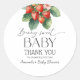 Elegant Watercolor Baby Shower Classic Round Sticker with strawberry and calligraphy text " Berry Sweet Baby" for celebration your beautiful baby to arrive!