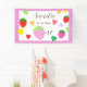 Dieses niedliche Banner mit roten und rosafarbenen Erdbeeren und farbenfrohen Lieben in Rot, Rosa, Gelb und Grün auf weißem Hintergrund. Das Banner ist mit weißen und rosa Streifen gerahmt. Der Name kann personalisiert sein.