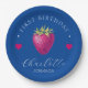 Strawberry Hearts Birthday Girl Dark Blue Pappteller