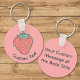 Darstellung einer Erdbeere. Benutzerdefinierte Hintergrundfarbe. Benutzerdefinierter Text auf beiden Seiten.