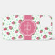 Rosa mit Monogramm Blumenschild auf einem skurrilen, femininen Erdbeermuster und einem waschfarbenen Muster. Individuelles Geschenk mit Namen und Monogramm Vorlage.
