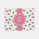 Rosa mit Monogramm Blumenschild auf einem skurrilen, femininen Erdbeermuster und einem waschfarbenen Muster. Individuelles Geschenk mit Namen und Monogramm Vorlage.