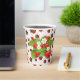 Ein Papiercup, der in rosafarbenen Polka-Punkten und frischen Erdbeeren konzipiert ist