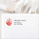 Eine rote Erdbeere mit einem rosa Bug. Personalisieren Sie Ihren Namen und Ihre Adresse und fügen Sie diese hinzu. Schwarze Buchstaben.