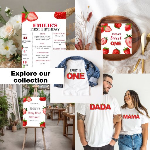 Erstes Geburtstagszeichen für Baby Milestone mit Erdbeermotiv. Das Design besticht durch ein stilvolles, modernes Textlayout. Sie können die Farbe und den Hintergrund ändern. Verwenden Sie die Schaltfläche "Zur weiteren Anpassung klicken" unter "Diese Vorlage personalisieren", um weitere eingehende Anpassungen vorzunehmen.