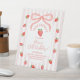 Invite your guests to participate in a meaningful tradition with this matching "Berry First" table sign. Featuring the signature pink coquette bow and watercolor strawberries, it clearly marks your time capsule station while adding to the whimsical decor. This sign ensures your memory-making activity is organized and looks beautifully professional within your strawberry theme.