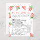 Niedliche Mädelsduscheinkarte mit Aquarellbild von Erdbeeren. Im Text steht: "Ein beerisches süßes Baby ist unterwegs." Matching-Elemente verfügbar.