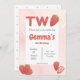 Erdbeere zum Thema Geburtstagseinladung. Hell Zwei Buchstaben mit Erdbeeren. Sweet Polka Punkt Details auf der Rückseite. Rot und Rosa. Ideal für Kleinkinder und Kleinkinder, 2. Geburtstag. Einfache Bearbeitung von modernen lustigen Texten. Passt in Tutti fruchtig / zwei fruchtige Party Thema oder Beeren süß Thema. Finden Sie passende Accessoires im Gemma Harlow Kreationen Store oder transferieren Sie Design auf Ihre Lieblingsprodukte.