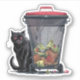 Fügen Sie Ihrem Laptop, Ihrer Wasserflasche oder Ihrem Notebook eine Touch urbanen Charmes hinzu, mit diesem Aufkleber, der eine streunende Gasse-Katze in der Nähe eines mit Schrott gefüllten Mülls enthält.