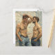 This striking artwork captures an intense, unspoken exchange between two muscular male figures set against a textured, graffiti-like wall. The artistic style is raw and immediate, featuring the expressive brushwork and slightly distorted perspective that can be associated with early 20th-century movements, perhaps with a touch of modern realism. Clad only in denim jeans, their chiseled physiques are highlighted by dramatic lighting, emphasizing their strong, defined forms and the palpable tension between them. The composition focuses intimately on their profiles, with one figure resting his arm on his head in a gesture of contemplation or challenge, while the other meets his gaze directly. This piece successfully merges the classical appreciation of the male form with a contemporary, urban edge, conveying themes of masculinity, dialogue, and raw emotion. It's an impactful and visually arresting image for collectors who favor art with intensity and modern sensibility.