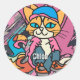 Street Retro Cat, Cap and Sneakers| Funny Runder Aufkleber