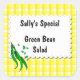 Ein benutzerdefiniertes Konservenetikett oder ein handwerkliches Etikett mit niedlichem Retro-grüner Saite oder Bohnen mit Bohnensprinklen, weißer Tüte und zwei Zeilen für Ihren benutzerdefinierten Text, klicken Sie auf Anpassen, um Zeilen hinzuzufügen oder zu löschen, Schriftart oder Hintergrundfarben zu ändern!