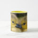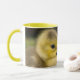 Ein nahes oben von zwei gelb, von den flaumigen Babyküken, die einander streicheln und betrachten.