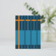 Ein abstraktes Design aus gewebten Streifen in Blau- und Orangetönen.