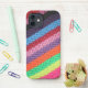 Strickbild aus bunten Strick Streifen Set auf einer Diagonale. Streifen in Rot, Rosa, Gelb, Grün, Orange, lila, Blau und Schwarz.